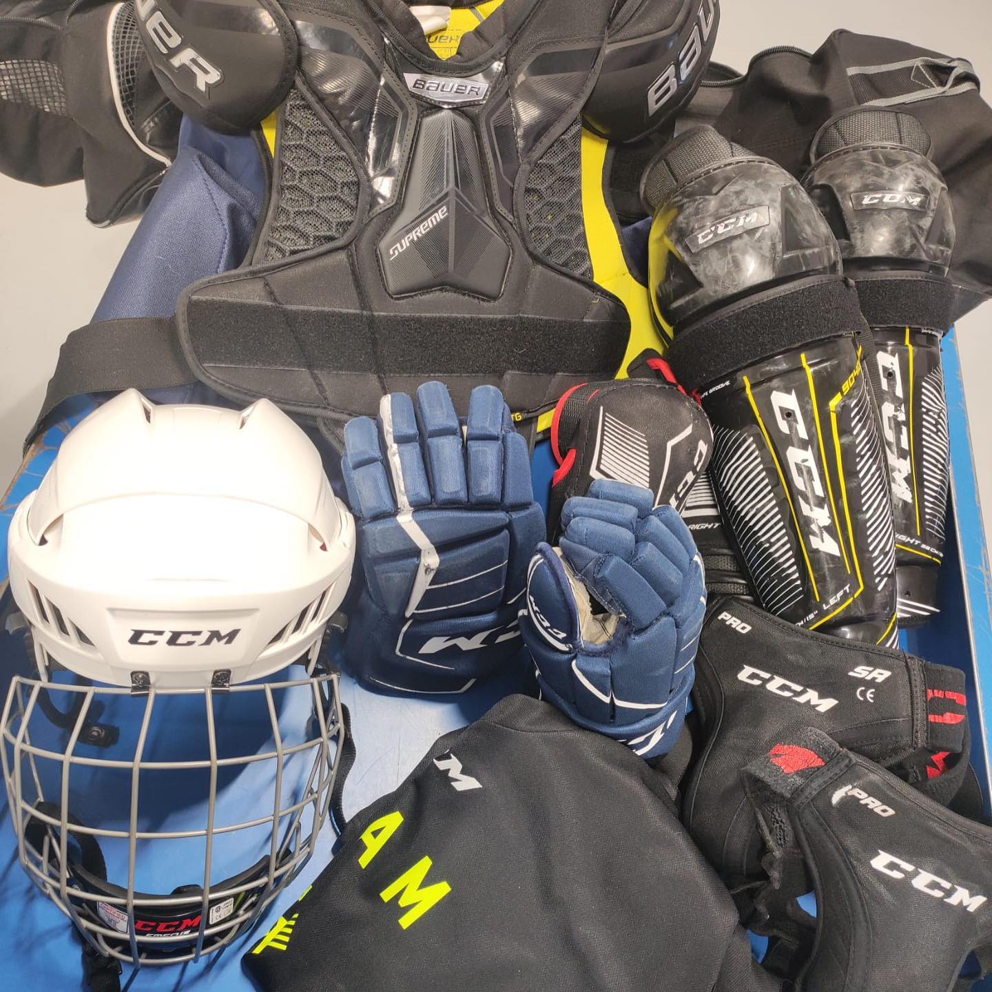 Jääkiekkovarusteiden puhdistus ja kuivaus. Pesemme lätkäkassin, pehmeät suojat, kovat muovisuojat – kaikki varusteet paitsi itse luistimet.